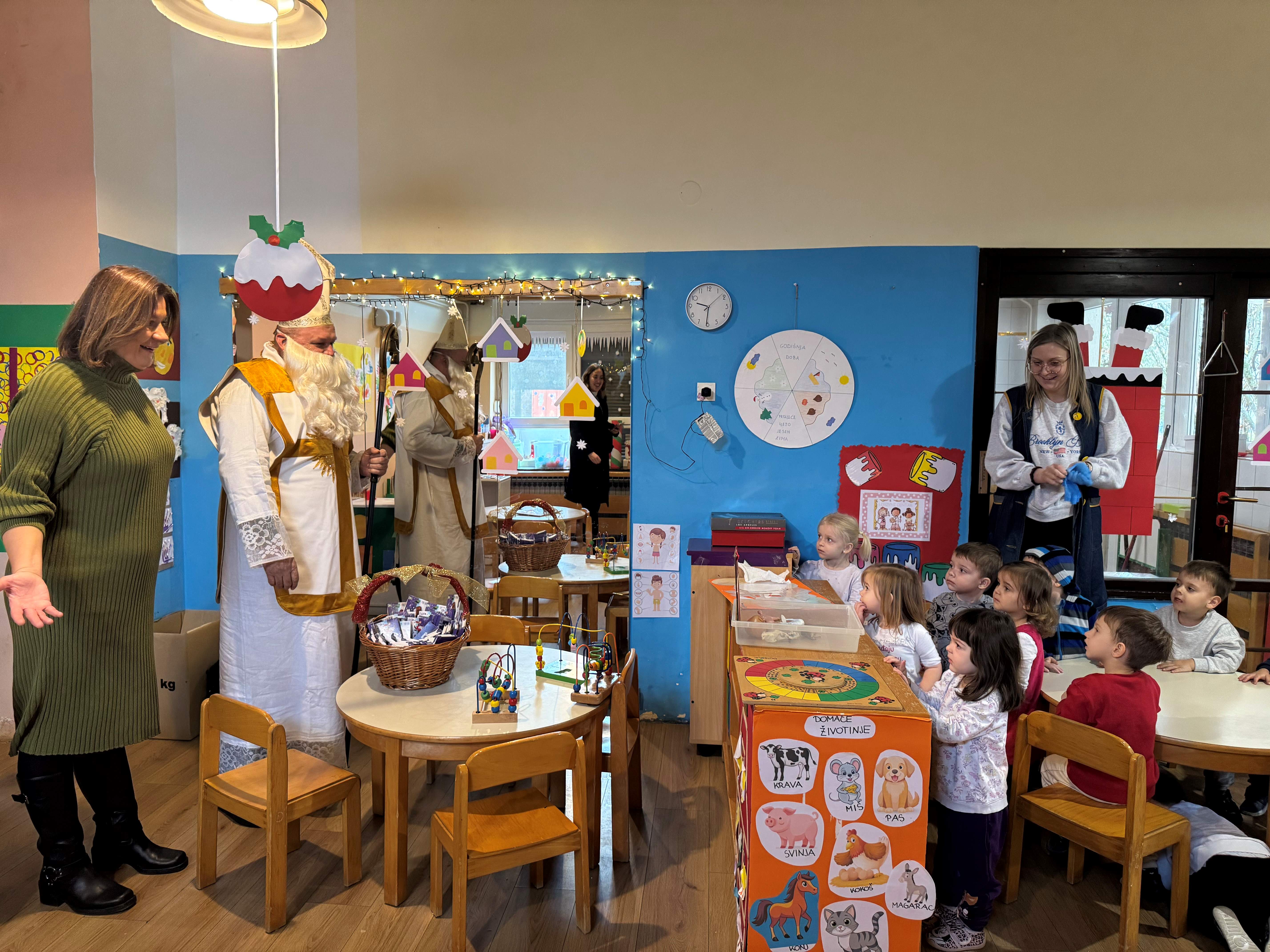 S osmijehom na licima i toplinom u srcu, sa svojim odgojiteljicama djeca su ga dočekala s uzbuđenjem i s malim znakovima pažnje. Neki su Sv. Nikoli pripremili crteže u znak zahvalnosti, a neki su mu otpjevali pjesmicu Sveti Niko.