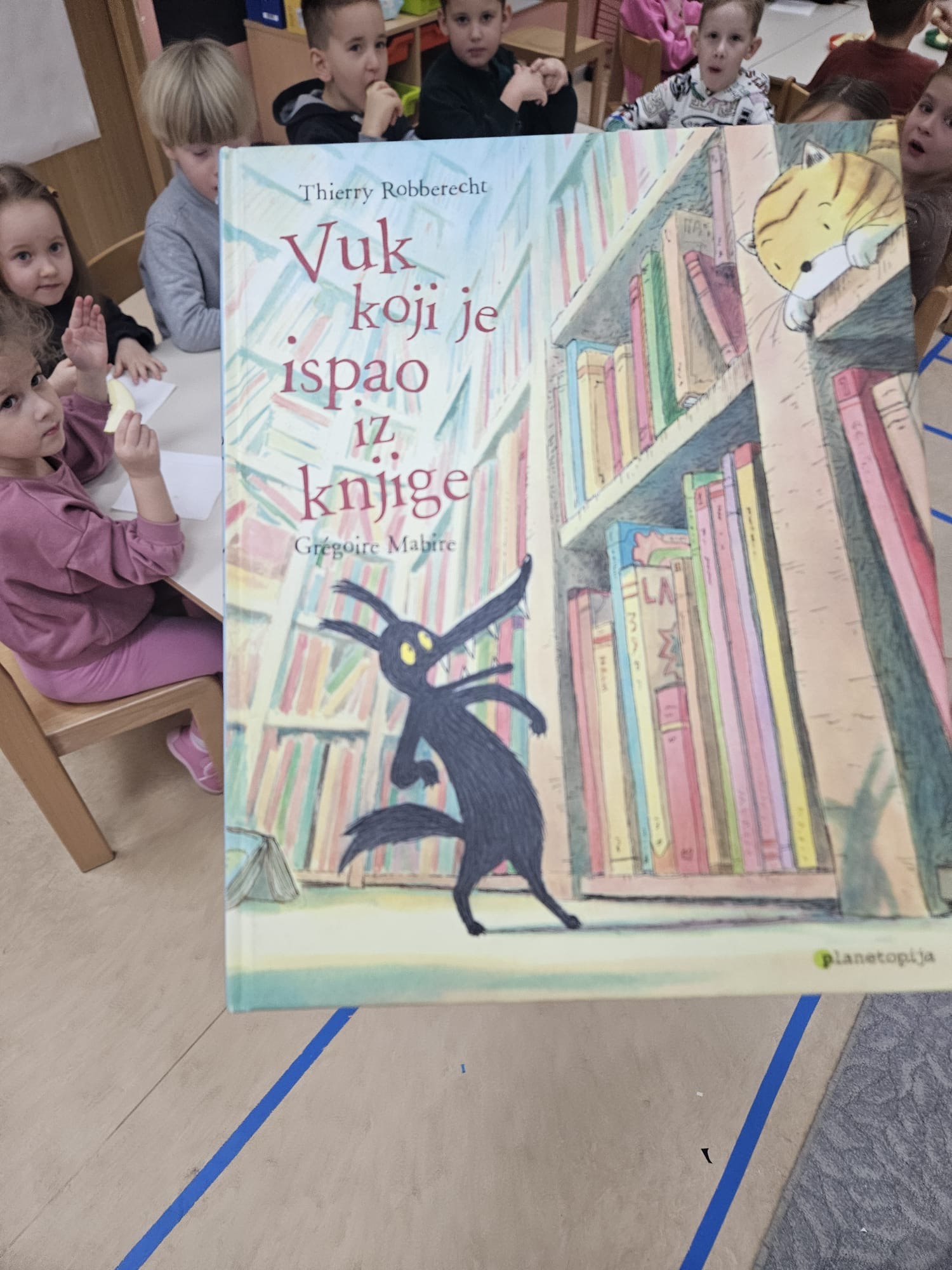 Skupina Smiley je obogatila užinu slikovnicom „Vuk koji je ispao iz knjige“. Dok su uživali u istoj, pažljivo su slušali priču i dogodovštine likova. Pritom su naučili razne nove riječi poput: prapovijest, batler i obrazovanje.
