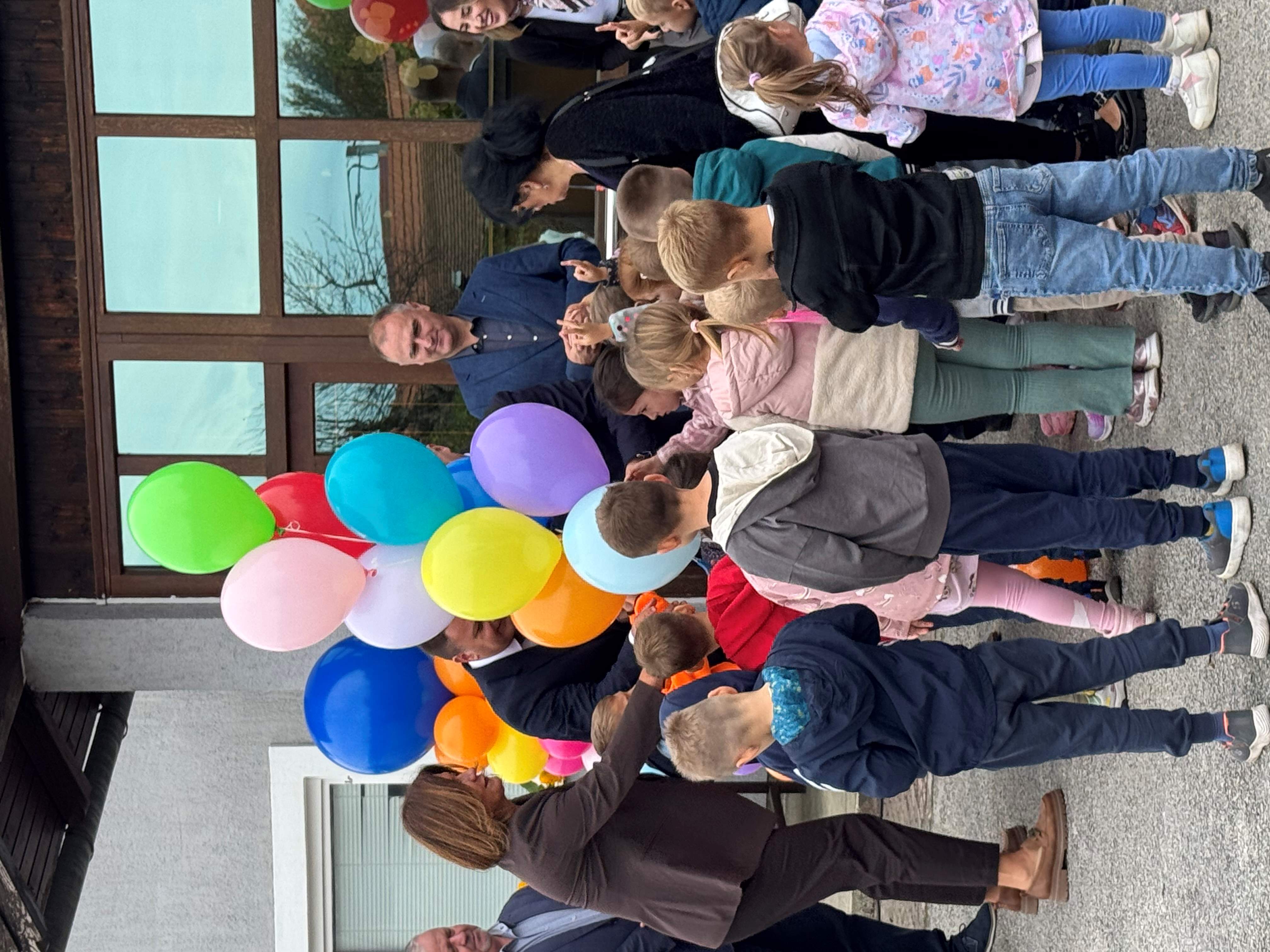 prerezala vrpcu balona i pustila ih u zrak te potom otpjevali pjesmicu „Kad si