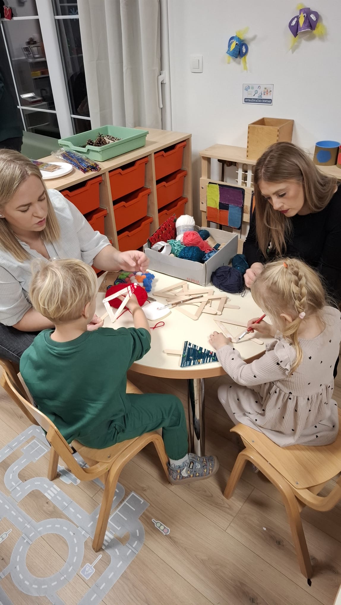 nasmijanih i zadovoljnih lica djece koja se druže sa svojim roditeljima izrađujući