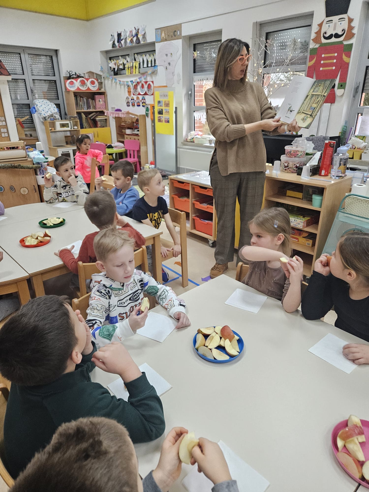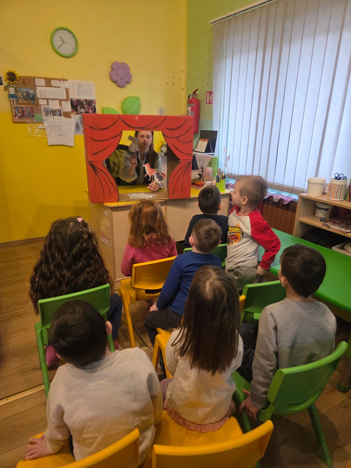 Mlađa skupina Ježići danas je uživala u dramatizaciji ukrajinske bajke „Rukavica“. Odgojiteljice su djecu smjestile u „kazališnu“ publiku te uz pomoć izrađenih figurica oživjele priču. Na taj su način djeca imala priliku upoznati se s pravilima ponašanja u kazalištu te razvijati navike kulturnog ponašanja. Kroz dramatizaciju djeca aktivno sudjeluju u razgovoru s likovima, uče ih imenovati i prepoznavati, a zajedničkim brojanjem stanovnika rukavice dodatno se potiče njihovo sudjelovanje.