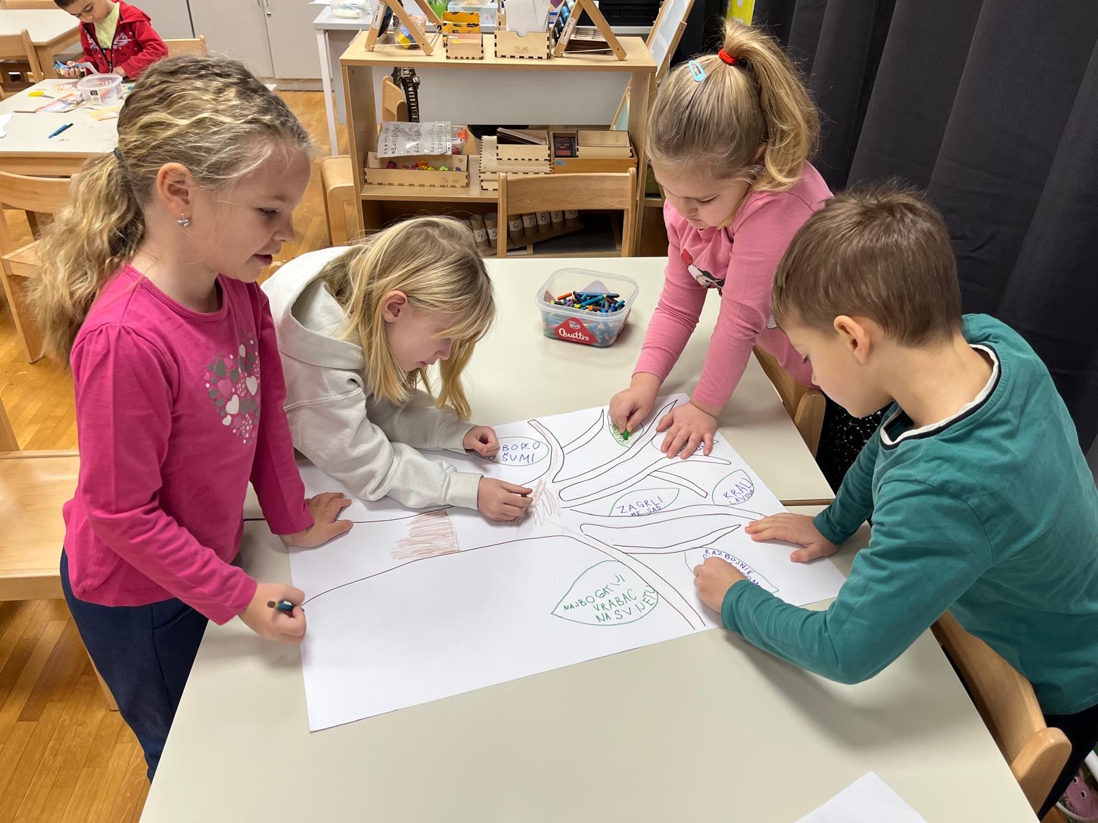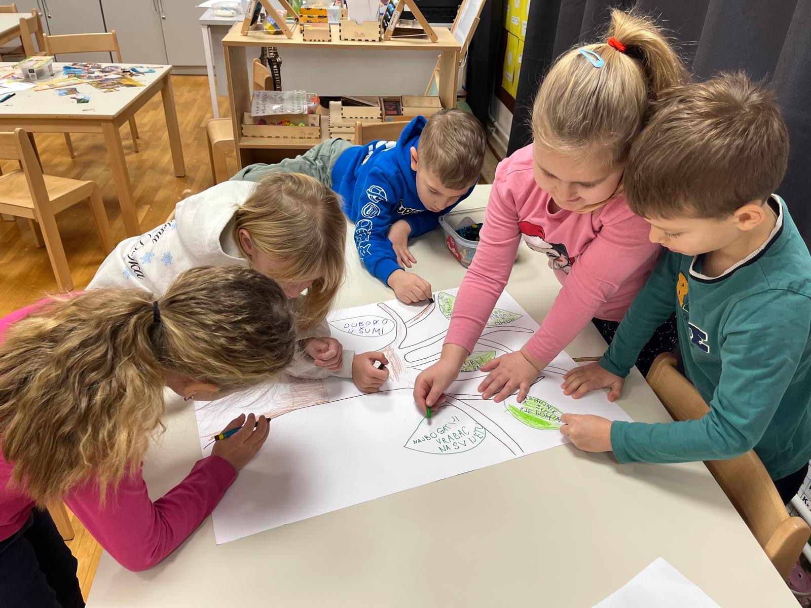 U predškolskoj skupini Lopoči čitali su slikovnicu „Momo se tuče u vrtiću” ,autorica Eva Brlek i Julija Kukec. U slikovnici se govori o izazovnim oblicima ponašanja, a priča pomaže djeci u prepoznavanju neugodnih emocija, učenju načina smirivanja i odabiru prihvatljivih oblika ponašanja. Nakon čitanja djeca su bojala listove i upisivala nazive do sada pročitanih slikovnica na čitateljsko drvo.