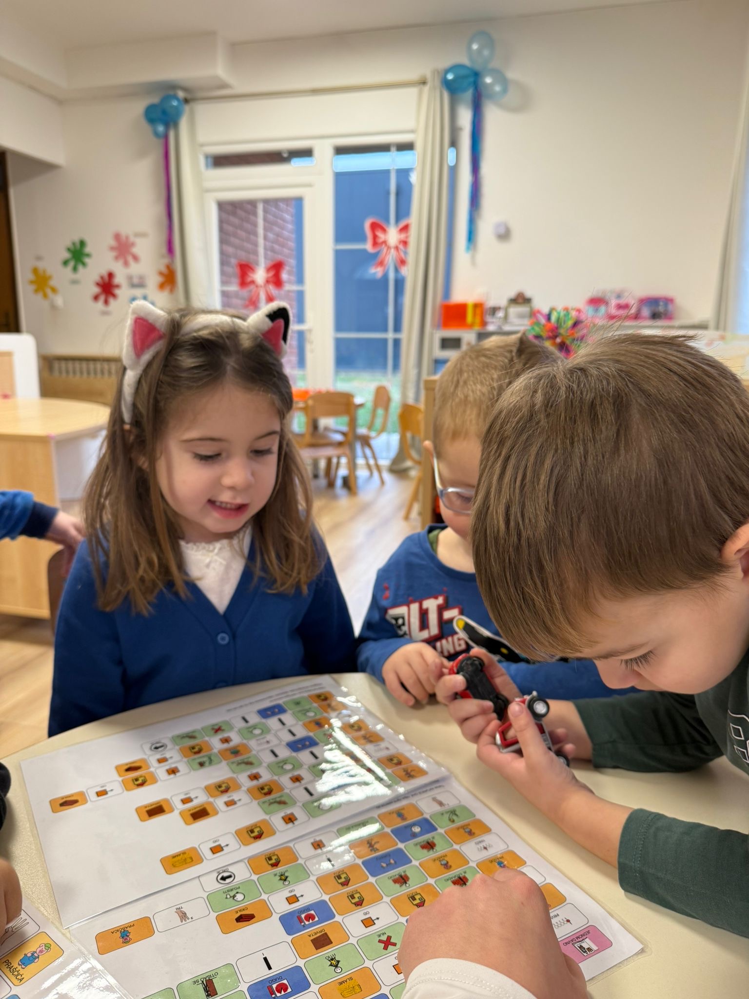 Jaslička skupina čitala je slikovnicu „Peppa Pig: Igra kišnog dana“. Odgojiteljica je okupila djecu na tepihu kako bi bolje vidjeli i pratili doživljaje omiljenog lika Peppa Pig. Zajedno su otkrivali skrivene likove na stranicama slikovnice, a s nestrpljenjem su čekali priliku da je sami prelistaju.